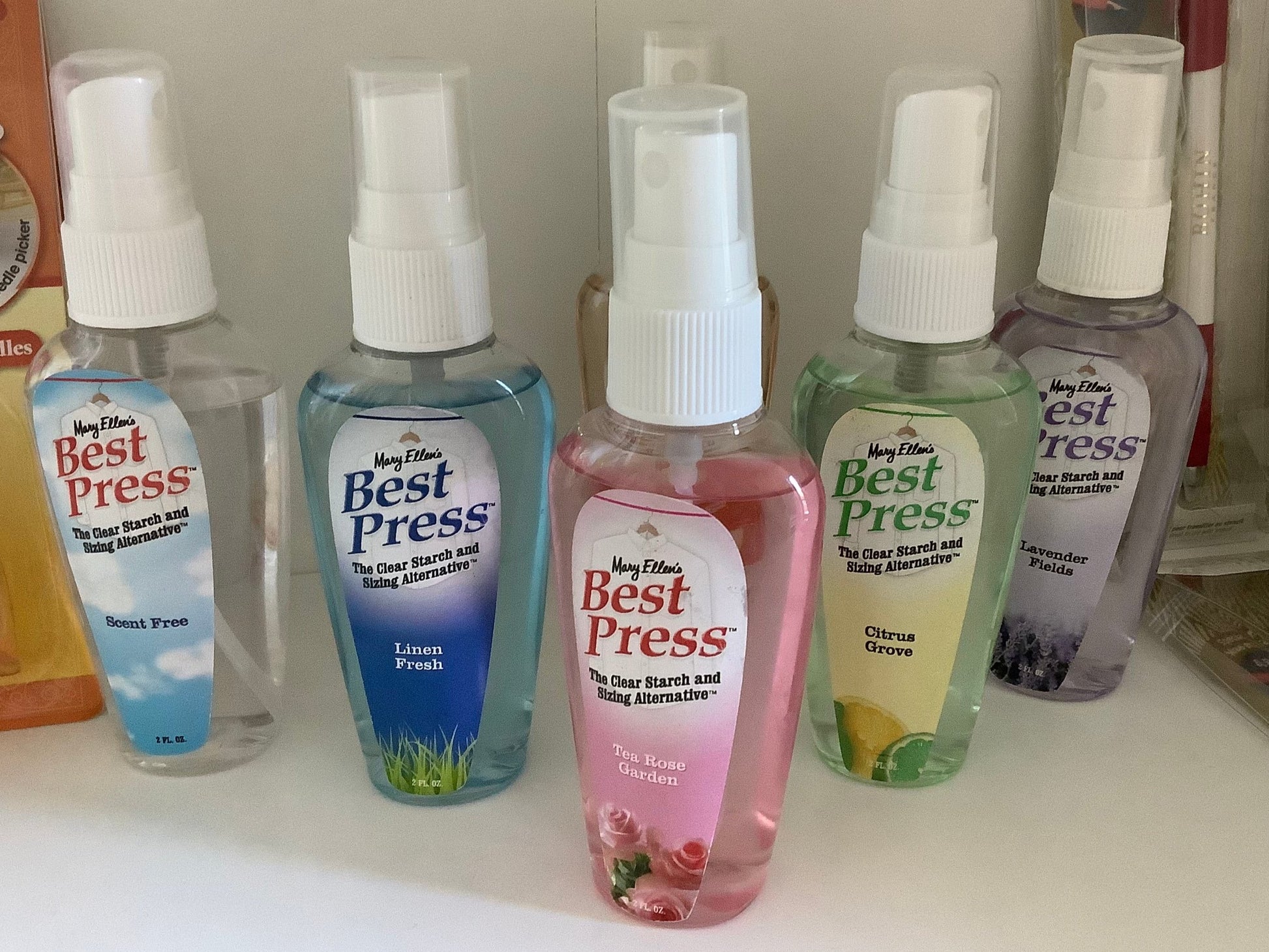 Best Press is a clear, crisp, spray starch with a lovely scent that makes ironing more enjoyable. Available in various scents.